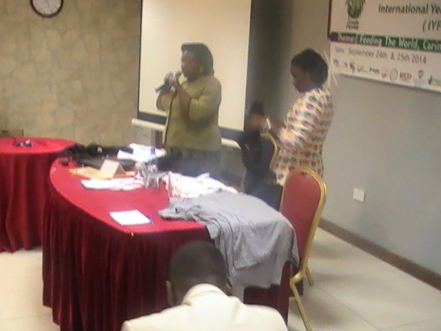 Dans son mot d’accueil, Madame Gertrude KENYANGI KABUSIMBI la Présidente la SWAGEN Support for Women in Agriculture and Environment a souhaité le bienvenu à plus de 60 personnes venues de plus de dix pays africains qui, exposés à la main, remplissaient la salle du coin bas du Hôtel Africana and Convention Center. Elle a fait savoir qu’une telle conférence arrive à point nommé car pendant une année dédiée à l ‘agriculture familiale une consultation entre les différents intervenant dans ce secteur est de grande nécessité pour qu’ils échangent sur l’état d’avancement en matière agricole. Selon elle, plus d’agriculteurs en Afrique fournissent tant d’efforts pour produire plus mais souvent ils ont un rendement médiocres ou produisent mais ne jouissent pas des résultats de leurs efforts.